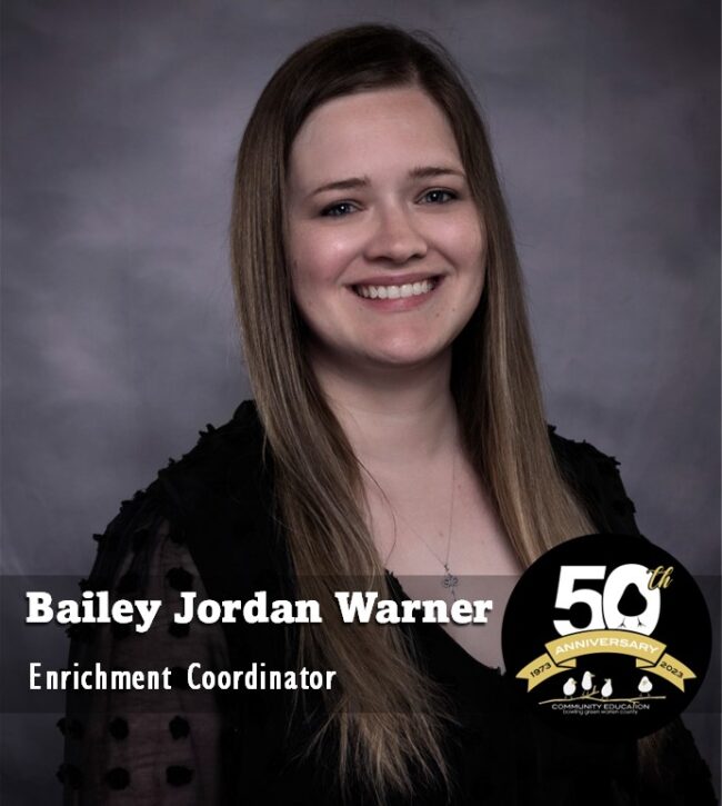 Community Education is fortunate to have an enrichment coordinator who also is their resident artist. Meet Bailey Jordan Warner, whose Community Education roots run deep. Warner said Community Education has…