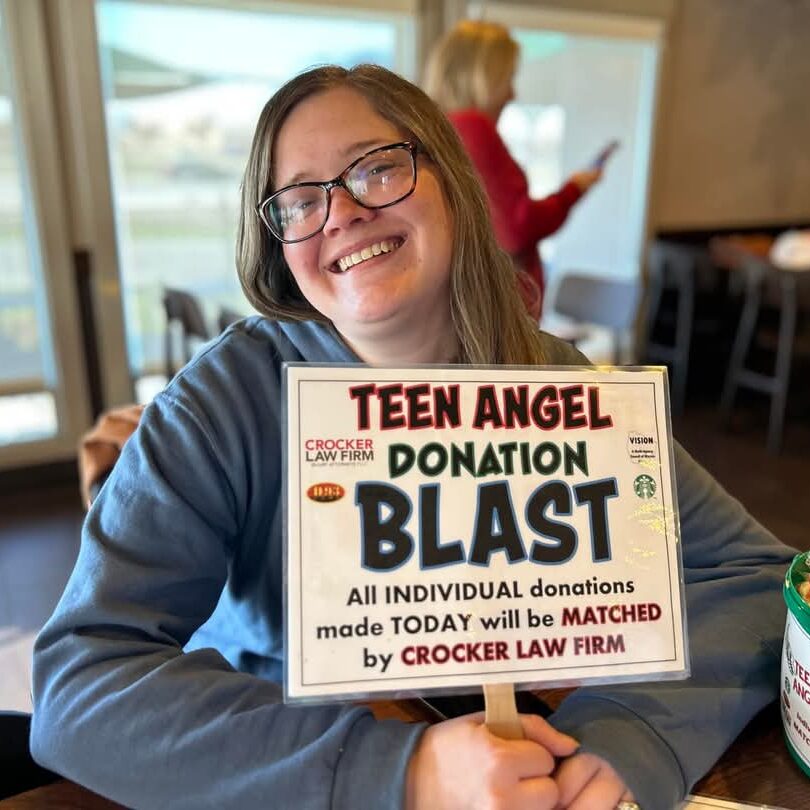 Crocker Law Firm proudly sponsors the Donation Blast and matches every dollar contributed by the public. Since 2010, the firm has donated more than $100,000 to Teen Angel, matching the generosity of this community and helping ensure that every teen has a bright Christmas.